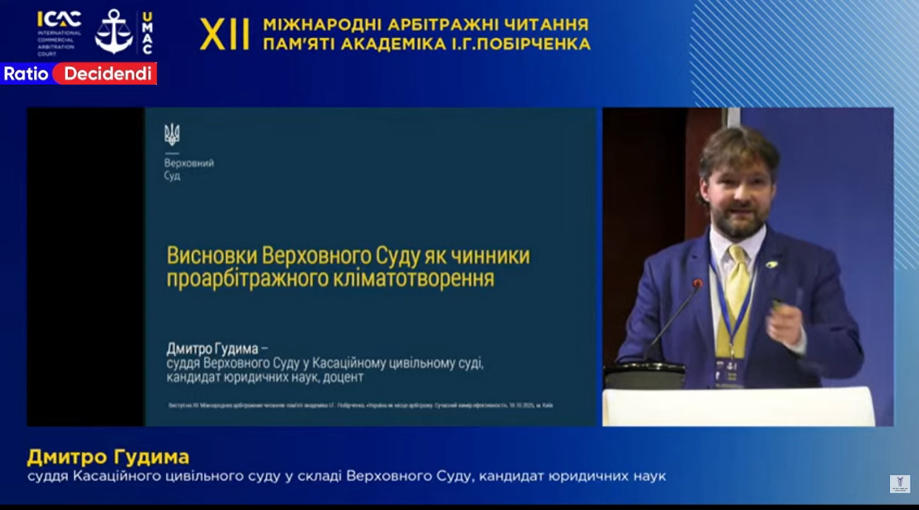 Тема доповіді: "Висновки Верховного Суду як чинники проарбітражного кліматотворення"
