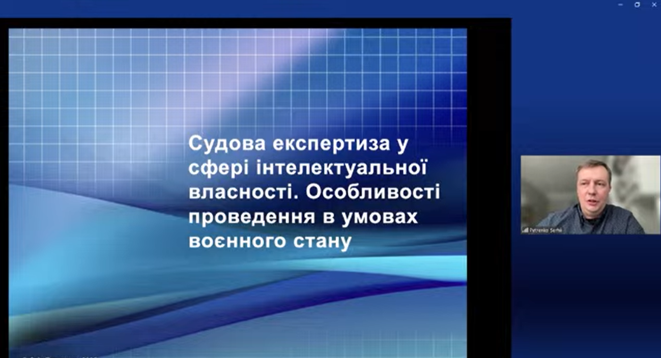 Тема доповіді: "Судова експертиза у сфері інтелектуальної власності. Особливості