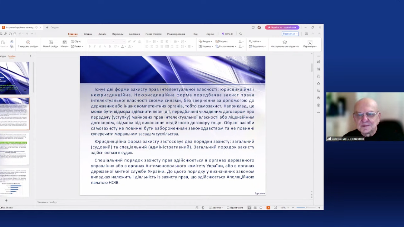 Тема доповіді: "Актуальні питання захисту прав інтелектуальної власності"